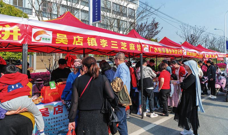4月1日,“大地歡歌四季村晚”——中華山盟·月光海誓匯聚廣水消費(fèi)年暨月光海招商推介會(huì)在長(zhǎng)嶺鎮(zhèn)舉行,全面啟動(dòng)該市“四季村晚”、廣場(chǎng)舞展演、“鄉(xiāng)村四時(shí)好風(fēng)光”鄉(xiāng)村旅游精品線路推廣等12項(xiàng)鄉(xiāng)村文化系列活動(dòng),并組織“送戲下鄉(xiāng)”、送圖書(shū)、非遺下鄉(xiāng)等文化惠民活動(dòng),以文惠民、以文塑旅、以旅興業(yè),豐富、活躍農(nóng)民群眾文化生活,推動(dòng)鄉(xiāng)村文化和旅游深度融合發(fā)展。圖為文旅產(chǎn)品大集上,愛(ài)好美食的群眾爭(zhēng)相購(gòu)買(mǎi)農(nóng)產(chǎn)品。