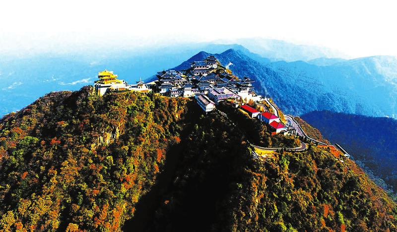 坐落于寶珠峰之巔的大洪山慈恩寺,于2009年開始建設,2013年10月全面建成。寺院建筑群依山而建,坐北朝南,以大雄寶殿為中心,呈十字形展開,中軸線主體建筑由山門、天王殿、大雄寶殿、藏經閣、佛足閣、金頂依次展開,錯落有致,磅礴大氣,再現唐宋佛教“楚山望剎”盛景。