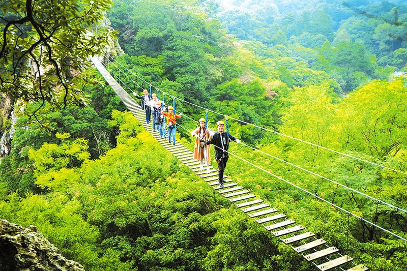 大洪山戶外叢林探險共打造了叢林飛躍、叢林飛索和叢林攀巖三種經典項目。這種綠色戶外健康活動,驚險刺激,具有探險性質。通過鋼索串聯每個節點,形成空中走廊,利用高低落差的重力,通過鋼索、樹木空中平臺完成兩叢林飛索之旅,體驗自由滑翔的快感,激發人的潛能,展現人的勇敢與機智,讓人戰勝內心懦弱、找回自信。據悉,叢林飛索是國內首家、全世界規模最大的新型戶外叢林飛索項目。