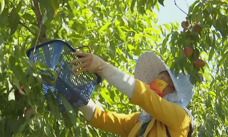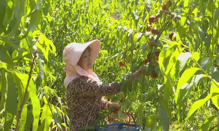 “從7月初開始,花果海的桃子就陸續成熟了,每天的產量在一千斤左右”,正忙著采摘鮮桃的農戶廖幫明說,“目前正是白桃成熟季,這種白桃也叫白如玉,是毛桃系的品種,口感脆甜。”