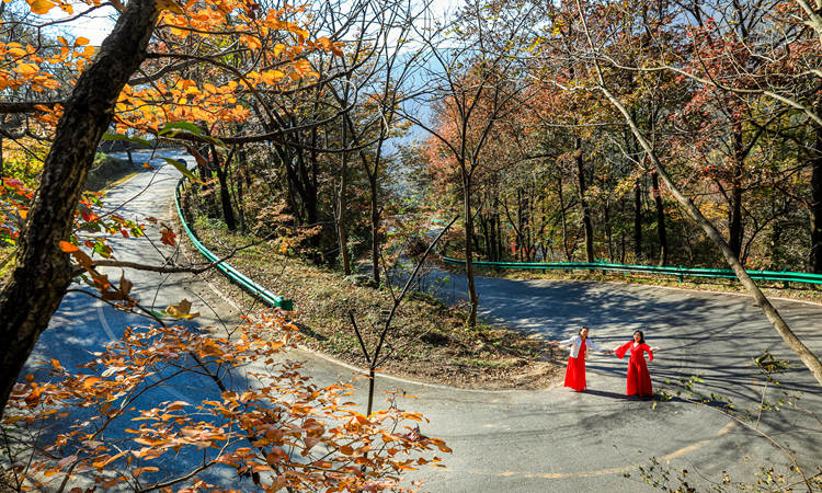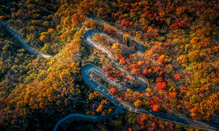 從山腳的游客中心出發,自駕穿行于大洪山的山野之間,開啟這段美妙的旅程。遠遠近近的群山深沉起伏,矗立于寶珠峰之上的大慈恩寺、金頂遺世獨立,伸出手觸摸山風,秋景入眼,空氣里都是自由的味道,澎湃的節奏在心里敲響,凡塵俗世被拋出腦后,欣然投入大山的懷抱,一往無前。