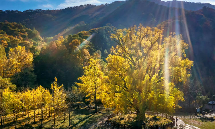 站在千年帝王杏前,想象著十一月的滿樹金黃;到白龍池湖畔的游步道走上一圈,一半山,一半水,足以忘卻凡塵瑣事;漫步樵河古道,尋覓山間秋色和野果;偶遇散養在山林之中的自在牛。
