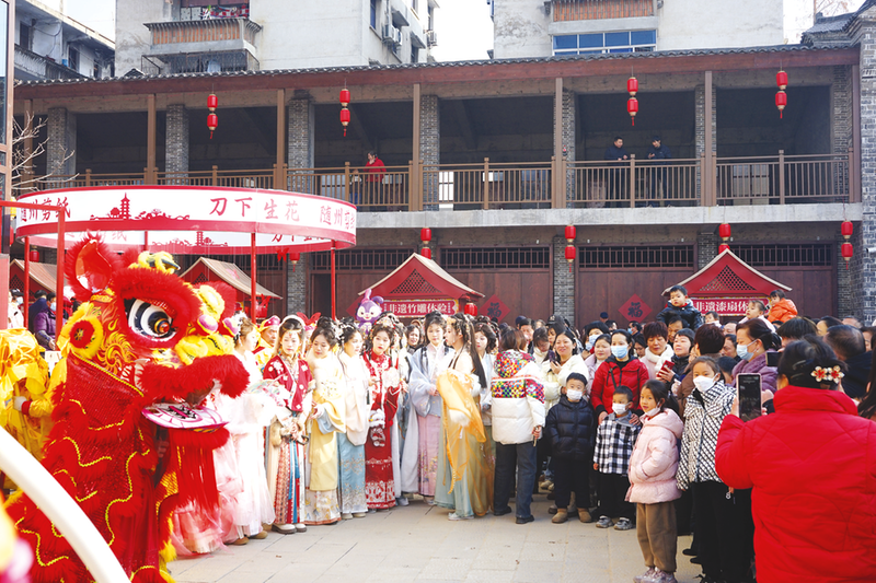 隨州草甸子文旅公司運營負責人邱迪介紹:“北街主要以文化類業態為主,包括隨州歷史文化名人館、隨博分館、漢東樓展陳等。從元旦開始陸續舉辦以非遺、婚俗、民俗為主的五大文化周活動,比如臘月十八的國風集體婚禮、臘月二十四的小年春晚分會場活動等,歡迎廣大游客前來游玩打卡。我們的目標是把草甸子街打造成隨州的城市會客廳,傳承和發展隨州特色文化 ?!?/span>
