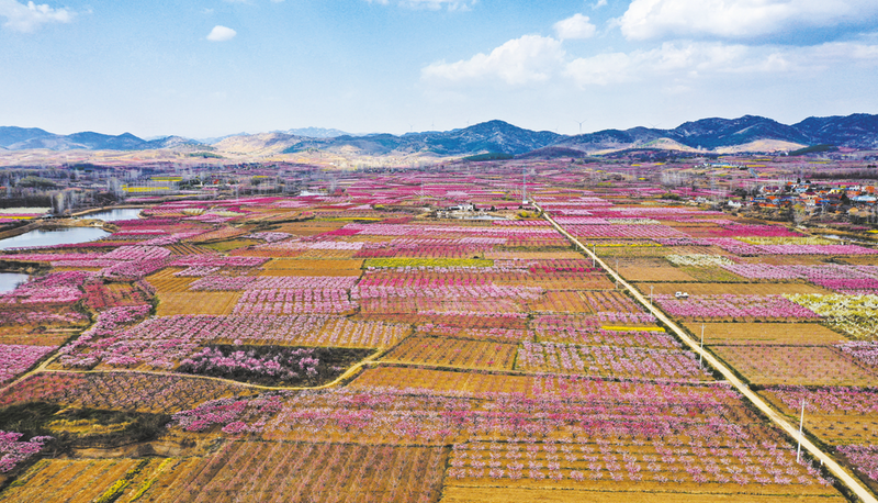 “賞花熱”的背后,是華寶山村多年來深耕產(chǎn)業(yè)的不懈努力。憑借當(dāng)?shù)貎?yōu)越的土壤和氣候條件,自2000年起,華寶山村開始在坡崗地上種植油桃、毛桃,并選育上市早、口感佳的品種進(jìn)行推廣。如今,全村桃樹種植面積近2萬畝,去年總產(chǎn)值超1億元。