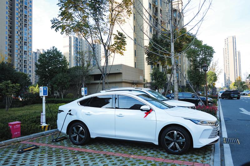 千千水岸·景城小區內居民正在為新購買的新能源汽車充電(隨州日報全媒記者鐘金輝攝)