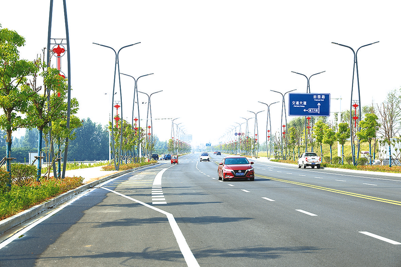 記者在現場看到,新修的道路寬闊平整,車水馬龍,平坦整潔的路面,嶄新的交通設施,道路標線清晰明顯,路燈綠植整齊排列,來往車輛有序通行,讓人耳目一新倍感舒暢。