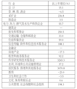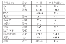 全年規模以上工業中,農副食品加工業增加值比上年增長13.2%,紡織業下降9.8%,化學原料和化學制品制造業增長4.2%,非金屬礦物制品業增長6.3%,黑色金屬冶煉和壓延加工業增長57.8%,通用設備制造業增長3.2%,專用設備制造下降2.4%,汽車制造業增長3.4%,電氣機械和器材制造業增長14%,計算機、通信和其他電子設備制造業下降1.4%,電力、熱力生產和供應業增長3.1%。 ?