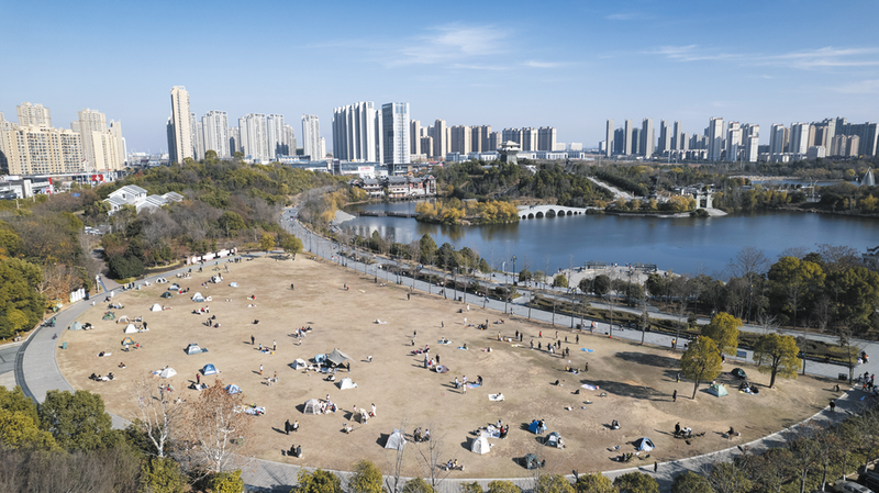 近日我市天氣晴好,不少市民在周末走出戶外,享受冬日的暖陽。圖為12月15日,市民在隨州文化公園露營休閑。