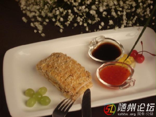? ? ?2、雞肉片沾上面粉和生粉,拖蛋液裹面包糠,灑上芝麻;