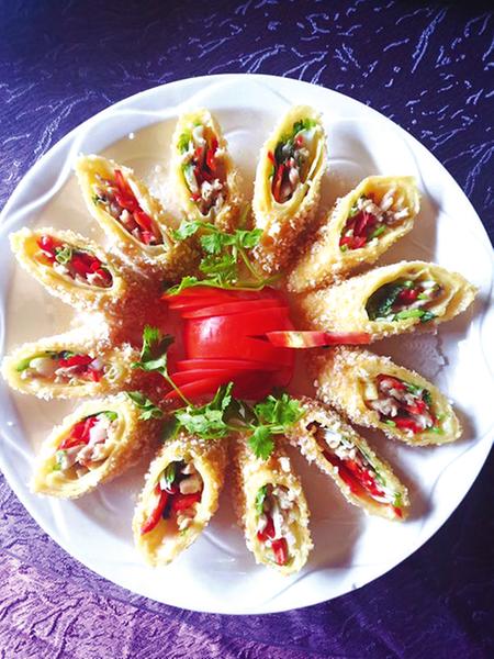 菱角肉,取新鮮豬腿肉(帶肉皮),煮熟,切成菱角形,碗底用鹽菜墊——這是上個(gè)世紀(jì)七、八十年代物質(zhì)匱乏時(shí)的做法,如今條件好了,不興這道菜了。