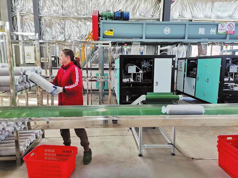 ????機(jī)聲隆隆,一袋袋長(zhǎng)寬固定、容量一致的香菇菌棒順著傳送帶前進(jìn),被運(yùn)送至養(yǎng)菌室后,由工人碼放整齊,在這里靜靜地為華麗“綻放”作著準(zhǔn)備。這是廣水市吳店鎮(zhèn)湖北紅倉(cāng)豐農(nóng)業(yè)科技有限公司現(xiàn)代化集中制棒生產(chǎn)線(xiàn)上的一幕。