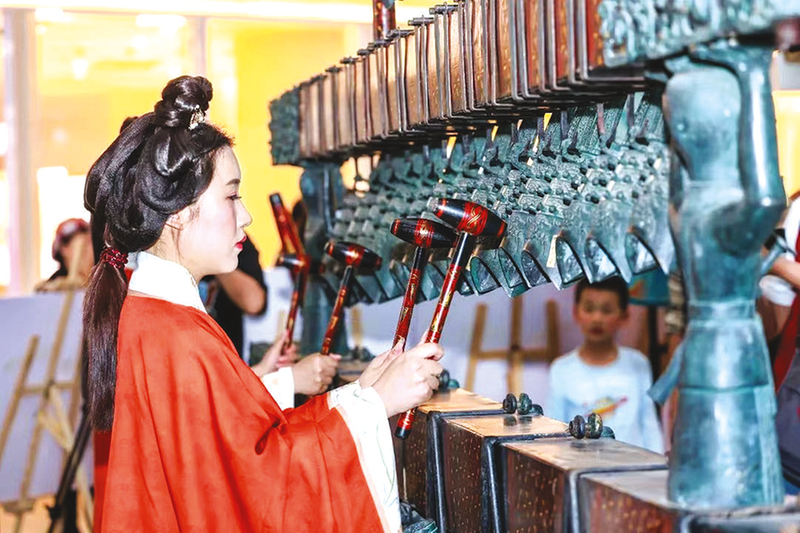 2010年上海世博會,曾侯乙編鐘(復制件)驚艷亮相,編鐘樂舞演出達2000余場,吸引了國內外觀眾5000余萬人次。