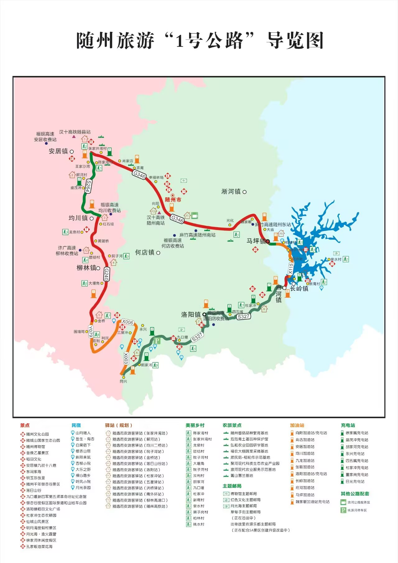 今年年初,市委市政府著眼于推動隨州文旅產(chǎn)業(yè)區(qū)域協(xié)同發(fā)展和農(nóng)文旅深度融合,創(chuàng)造性地提出了打造隨州旅游“一號公路”的工作部署。經(jīng)過前期我市文旅和交通部門的深入調(diào)研并報市委市政府同意,確立了隨州市旅游“一號公路”線路。該線路起點為漢十高鐵隨州南站,途經(jīng)淅河鎮(zhèn)、馬坪鎮(zhèn)、長嶺鎮(zhèn)、府河鎮(zhèn)、洛陽鎮(zhèn)、柳林鎮(zhèn)、均川鎮(zhèn)、安居鎮(zhèn)、南郊街道,串聯(lián)G348、G316、G240、S327等國省道干線,形成全長156公里的環(huán)線。