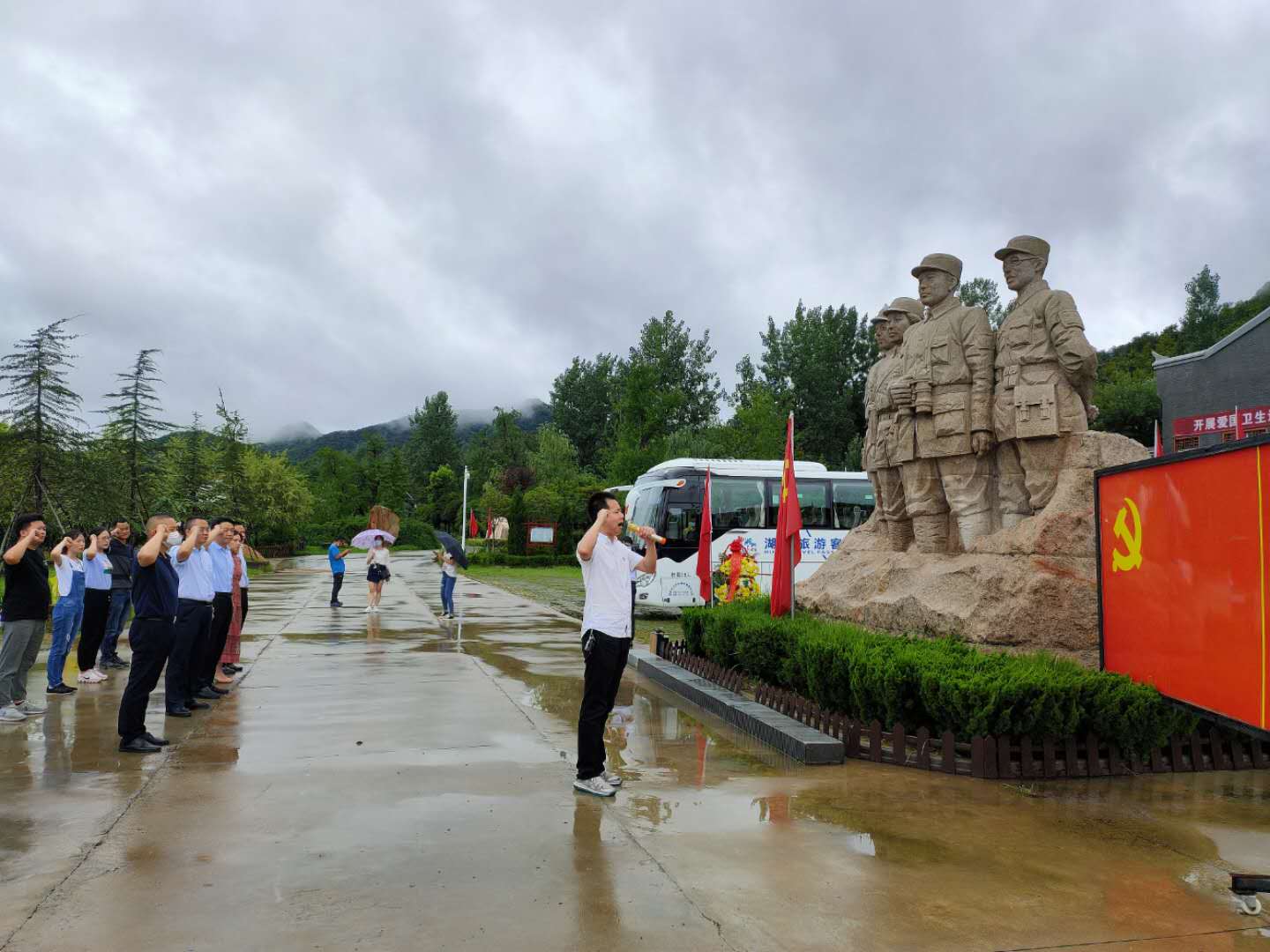 近日,隨州市大數據中心聯合中行隨州分行開展黨建共建活動。雙方黨員干部共20余人赴曾都區洛陽鎮九口堰新四軍第五師紀念館參觀學習,緬懷了李先念、陳少敏等革命先烈,重溫了新四軍第五師從組建、到發展、再到壯大的光輝歷程,以實際行動接受了黨性鍛煉和紅色精神洗禮,進行了一次深刻的革命傳統教育學習。