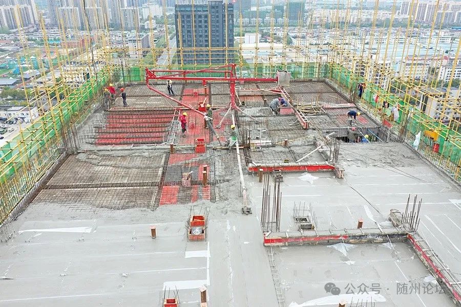 整棟塔樓最后一層屋面混凝土已澆筑完畢