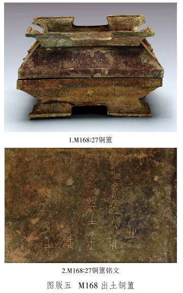 等,且大部分有銘文,銘文所涉及器主也較為一致,主要為“曾侯寶”,因此,可以判定該墓主為曾侯寶。M168墓主為春秋中期曾侯寶,與同一墓地春秋中期早段M190曾公求墓、春秋中期晚段M129曾侯得墓前后相繼,填補(bǔ)了春秋中期曾國(guó)歷史的缺環(huán),對(duì)研究曾國(guó)歷史文化具有重要意義。M168雖然被盜,但仍然出土了較多精美且?guī)с懳牡那嚆~禮器,而且可以與追繳回來(lái)的相關(guān)青銅禮器相對(duì)照,從而專家大致推測(cè)出墓葬隨葬青銅禮器的組合,為探討春秋中期高等級(jí)貴族墓葬禮器制度提供了重要的新材料。M168隨葬器物中新見(jiàn)有楚文化體系青銅禮器——缶,對(duì)研究曾楚文化交流與融合,特別是曾國(guó)從“左右文武”到“左右楚王”的歷史進(jìn)程具有重要意義。墓葬出土的銅戈上鑄有銘文“