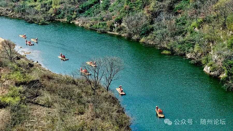 暮春的桐柏山北麓,淮河源頭的硯兒溝河碧波蕩漾,一葉葉竹筏載著游客順流而下,在鄂豫兩省交界處劃出優美弧線。