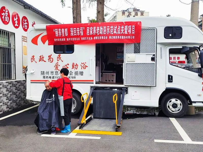 近日,曾都區東城街道八角樓社區門口停著一輛“愛心助浴車”,引得居民紛紛駐足。