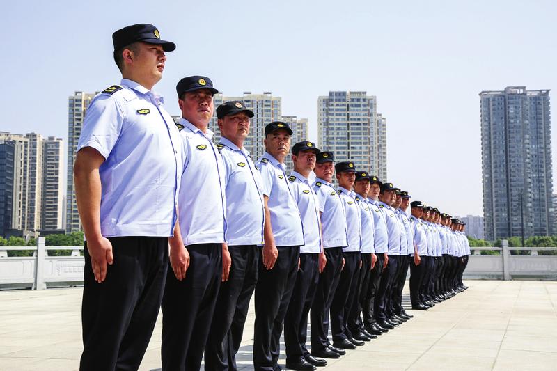 5月以來,曾都區東城街道綜合執法中心開展“學理論、強技能、練精兵”系列培訓活動。圖為執法隊員正在開展軍訓。?