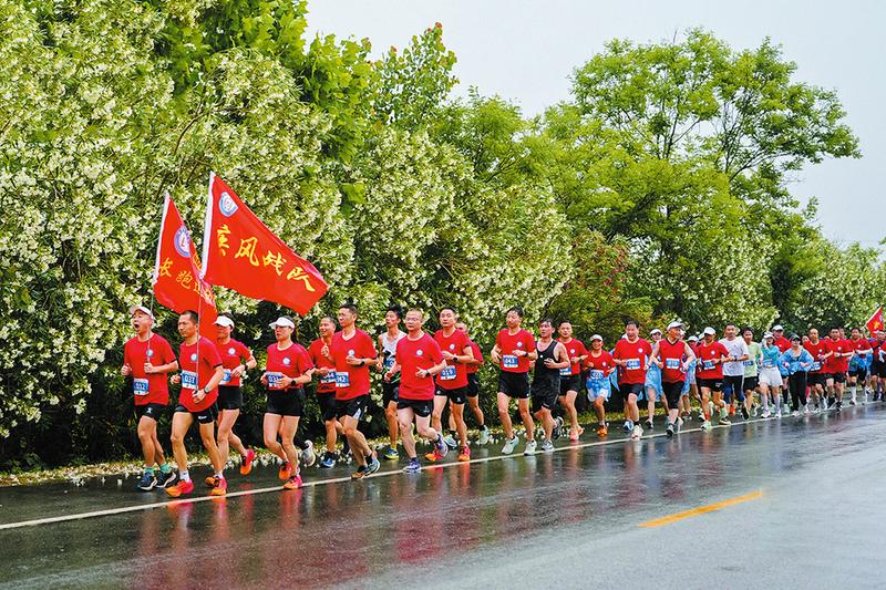 5月26日,我市長跑運(yùn)動協(xié)會開展慶尋根節(jié)健康長跑活動。當(dāng)天,我市近200名長跑健身愛好者參加了從隨州博物館廣場到炎帝故里風(fēng)景名勝區(qū)全長18公里的長跑活動。圖為長跑健身愛好者正冒雨跑在炎帝大道上。