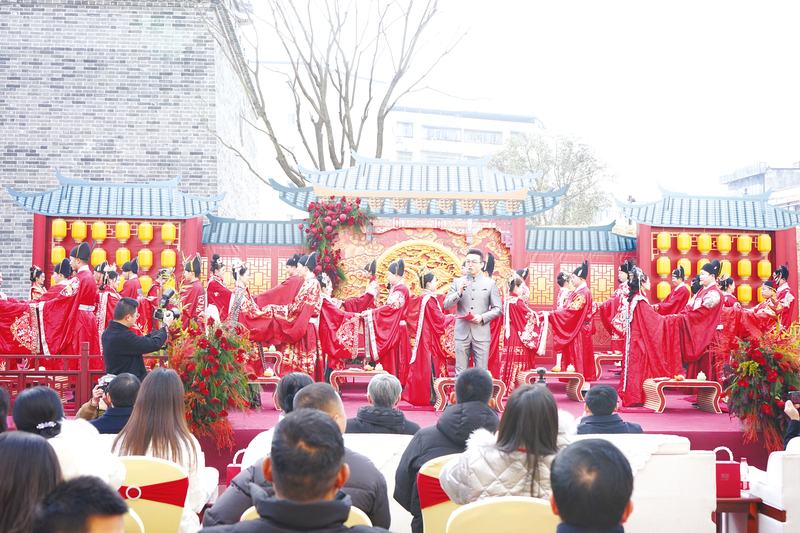 1月17日,隨州首次國風集體婚禮大典在草甸子歷史文化街舉行,以國風之美,展示中式婚禮浪漫,20對新人在嘉賓和親友的見證下,執手盟誓,以全新的形式共享幸福時刻,開啟幸福人生嶄新篇章。