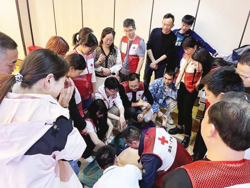 近期,廣水市紅十字會舉辦了兩期初級救護員培訓班。培訓教師借助模擬人和 AED 現(xiàn)場演示心肺按壓、人工呼吸的正確手法,借助繃帶、三角巾等教具讓參訓學員了解在止血包扎時如何做到“快、準、穩(wěn)”,避免患者受到二次傷害。