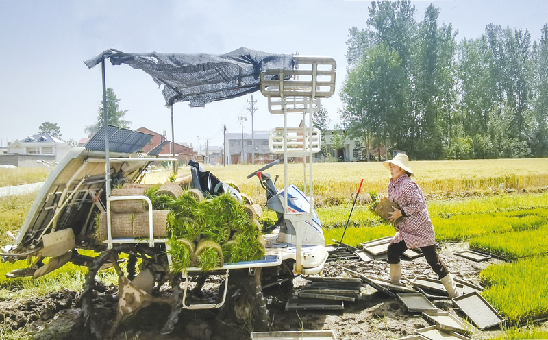 當前正值插秧關鍵期,曾都區淅河鎮陽光村農民正有序開展農事勞作。圖為農戶正從旱育秧苗床移取秧苗,為插秧機插秧作準備。