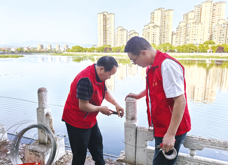 5月9日,廣水市學雷鋒志愿服務隊隊員發現廣水城區部分河岸護欄遭損壞,出現斷裂、傾斜,存在較大安全隱患。為確保市民安全,隊員采購鐵絲、警示牌等工具,對破損護欄進行應急加固,并設置警示標志,提醒過往行人注意安全。