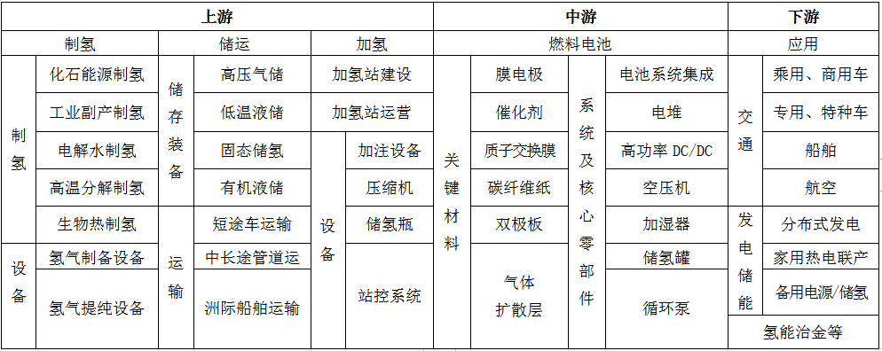 4.大力培育氫燃料電池汽車產業集群。充分發揮隨州新能源資源豐富優勢,統籌布局上游制-儲-運-加氫,中游燃料電池和下游應用產業鏈(如下圖)。