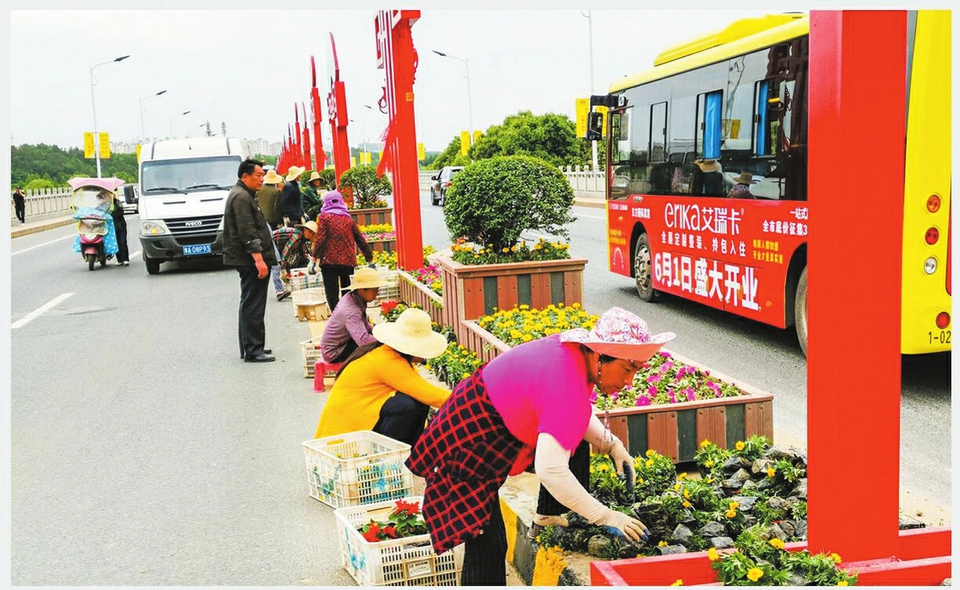 5月20日,市園林部門組織工人分別在火車站廣場、高速公路出入口、迎賓大道等城區主要對外窗口布置花卉和綠植景觀,為尋根節營造濃厚節日氛圍。