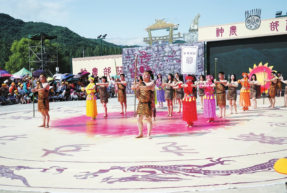 5月26日,己亥年炎帝文化廟會精彩啟幕。在隨縣淮河鎮和洪山鎮兩個分會場里,當地群眾自編自演的精彩文藝節目,吸引了周邊1萬余名群眾前來觀看。活動現場還舉行了特色農產品展銷活動。圖為淮河鎮分會場演出精彩瞬間。?
