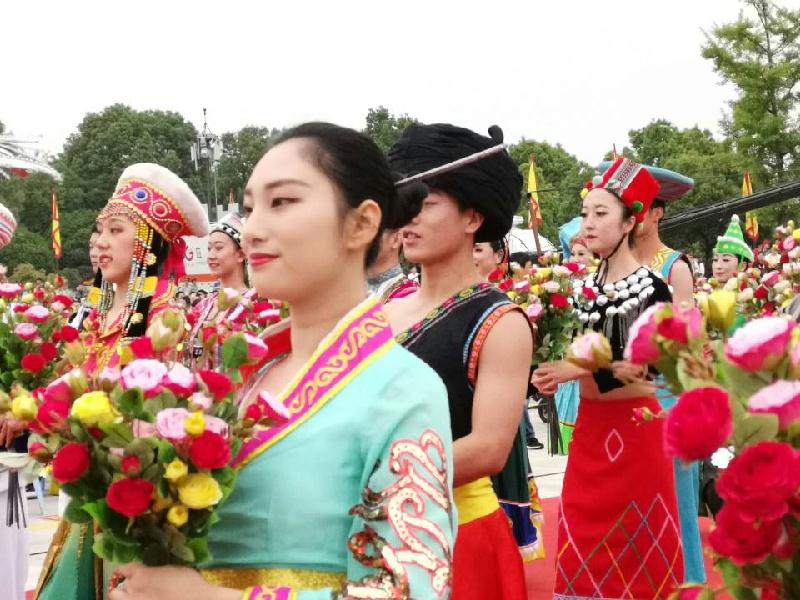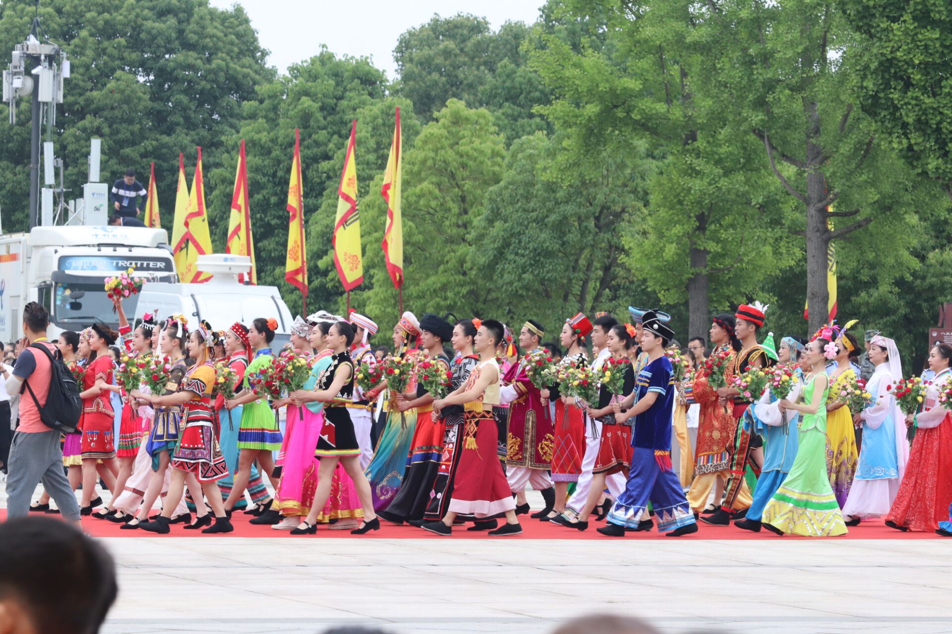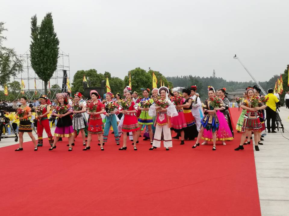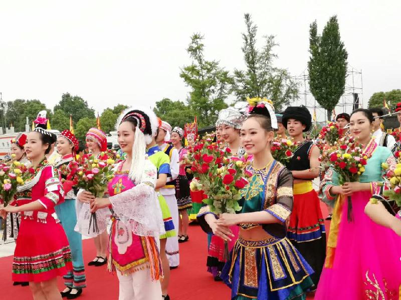 ?????? 參加尋根節(jié)的演職人員身著少數(shù)民族服裝入場(chǎng)。