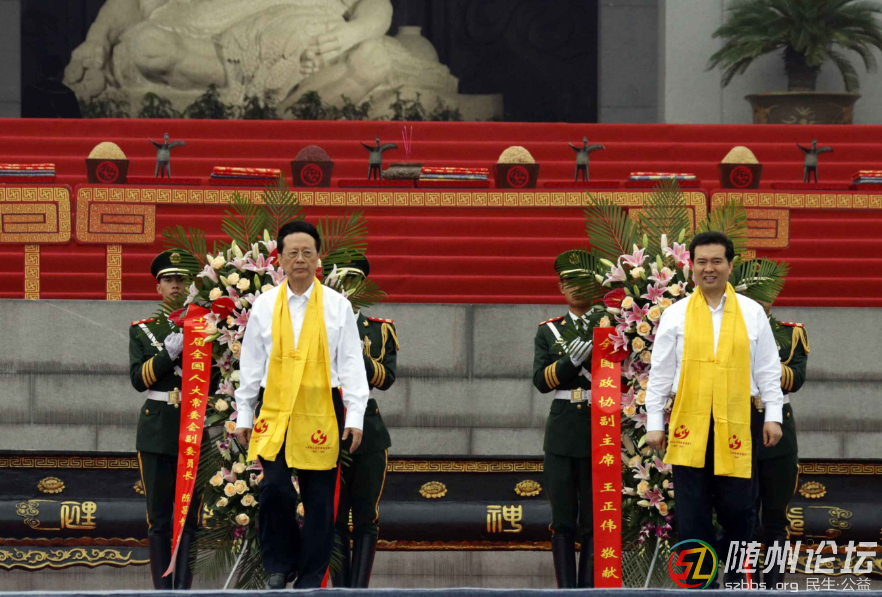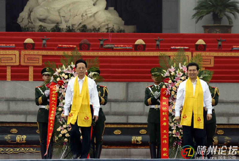 全國政協副主席王正偉、十二屆全國人大常委會副委員長陳昌智敬獻花籃。