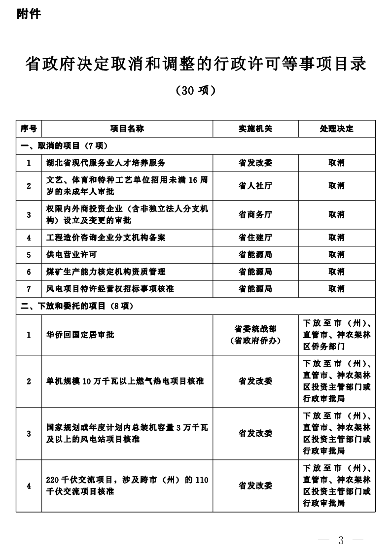 附件:省政府決定取消和調(diào)整的行政許可等事項(xiàng)目錄(30項(xiàng))