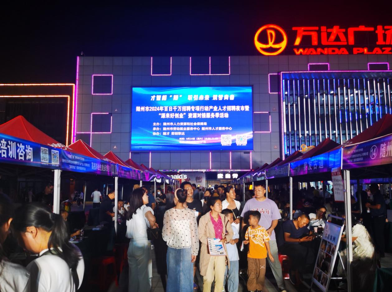 9月14日晚六點,隨州萬達廣場1號門前一場熱鬧的招聘“夜市”火熱開市。本次“隨州市2024年百日千萬招聘專項行動產業人才招聘夜市暨‘源來好創業’資源對接服務季活動”由隨州市人力資源和社會保障局主辦,隨州市勞動就業服務中心、隨州市人才服務中心承辦,是“百日千萬招聘專項行動”系列活動之一。隨州人社部門創新服務方式,更好優化營商環境,把就業服務站開到家門口,為廣大求職者和用人單位搭建了輕松、開放的互動交流平臺。