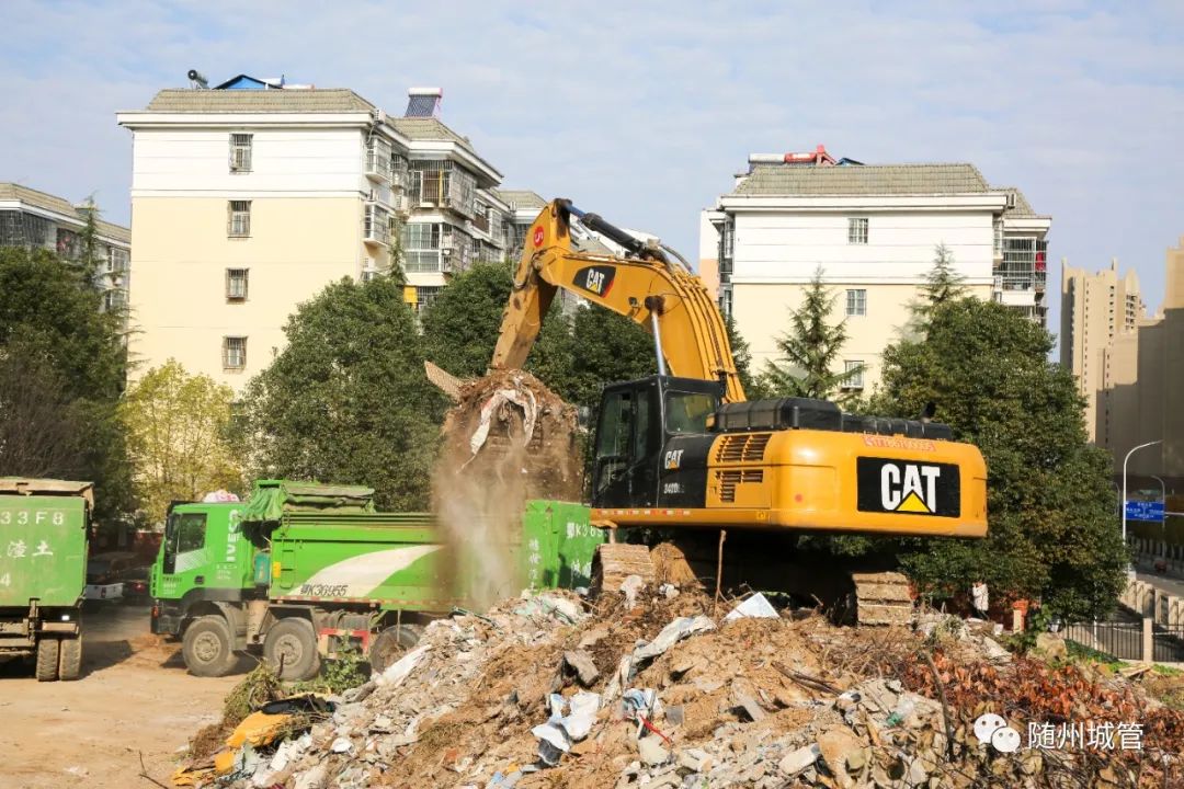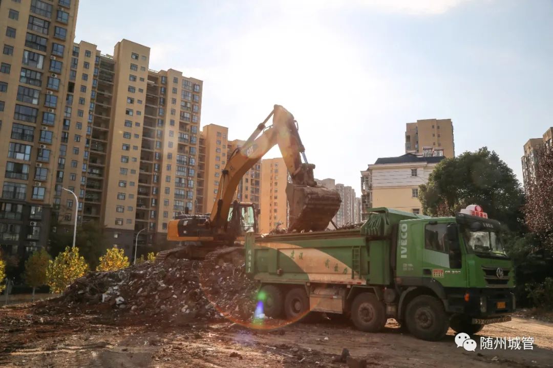 ????近日,隨州市城管執(zhí)法渣土大隊調(diào)集1臺挖機、1臺噴霧壓塵車和10臺渣土運輸車,協(xié)助隨州高新區(qū)熊家社區(qū),對熊家花園小區(qū)內(nèi)長期積存的建筑垃圾進行徹底清理。
