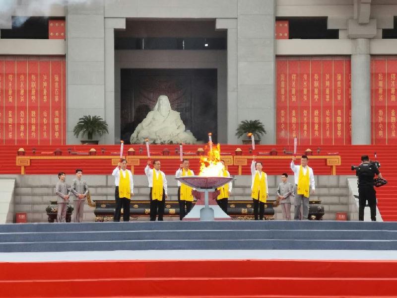 ??????? 2019年5月30日(農歷四月二十六),己亥年世界華人炎帝故里尋根節開幕式暨拜謁炎帝神農大典在隨州舉行。來自海內外的炎黃子孫齊聚烈山,共拜始祖,祈福中華。?開幕式上,改革先鋒茅永紅、泰國前國會主席蔡鄔泰、全國勞動模范王濤、美國商務促進會副會長劉純清、阿曼工業總署中國首席代表李向立、加拿大杰出華商協會會長劉鑫共同點燃圣火。