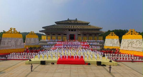 ??? 5月30日,丙申年尋根節開幕式及拜祖大典進行帶妝彩排,圖為彩排現場。