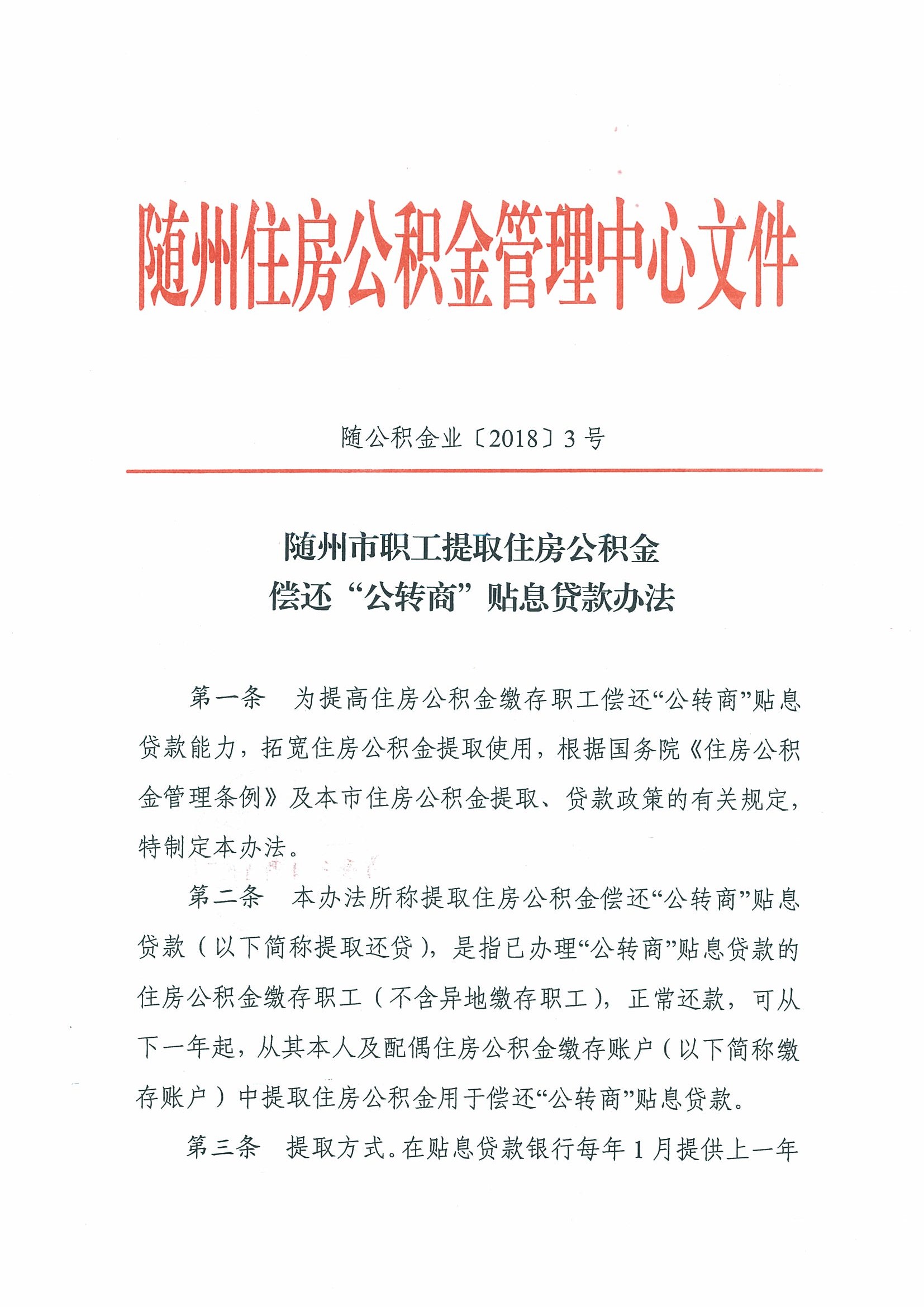 隨州市職工提取住房公積金償還“公轉商”貼息貸款辦法