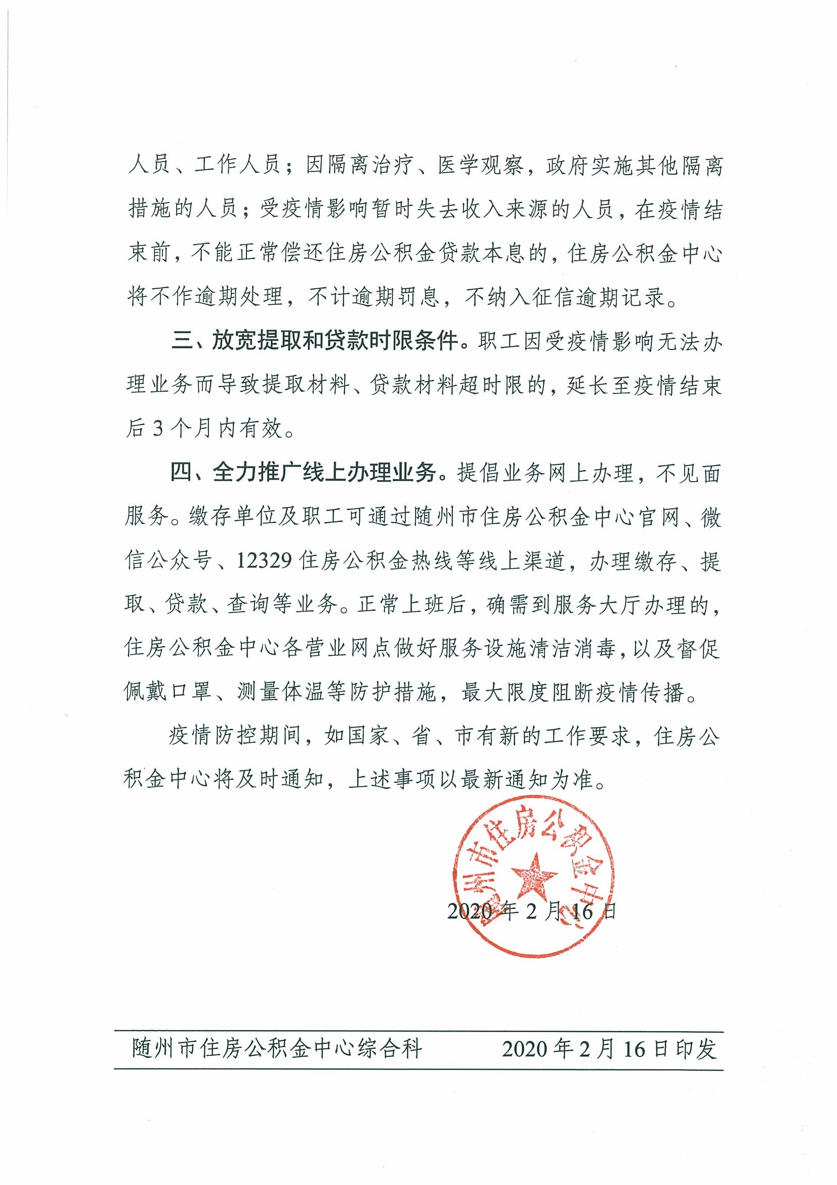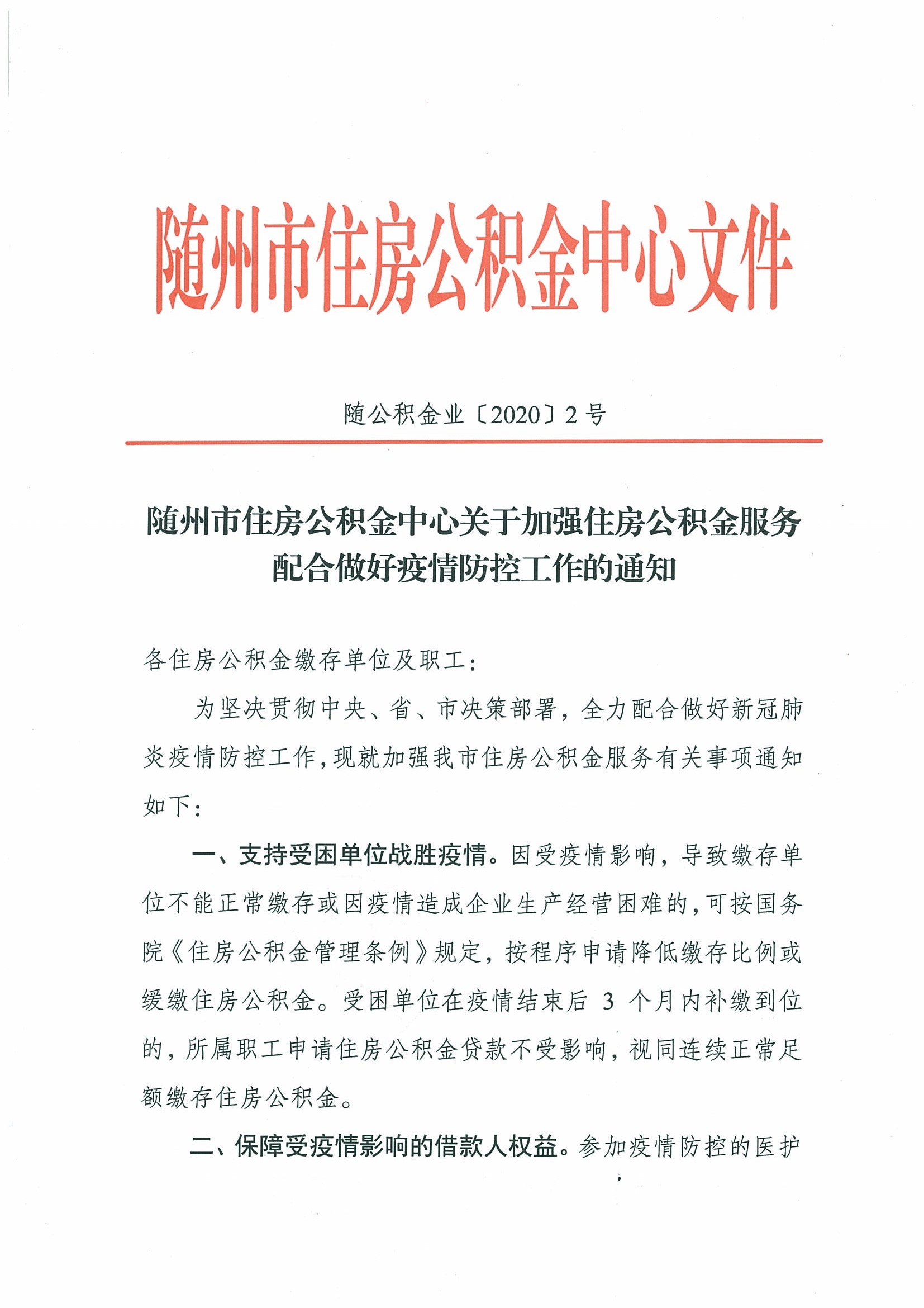 隨州市住房公積金中心關于加強住房公積金服務配合做好疫情防控工作的通知