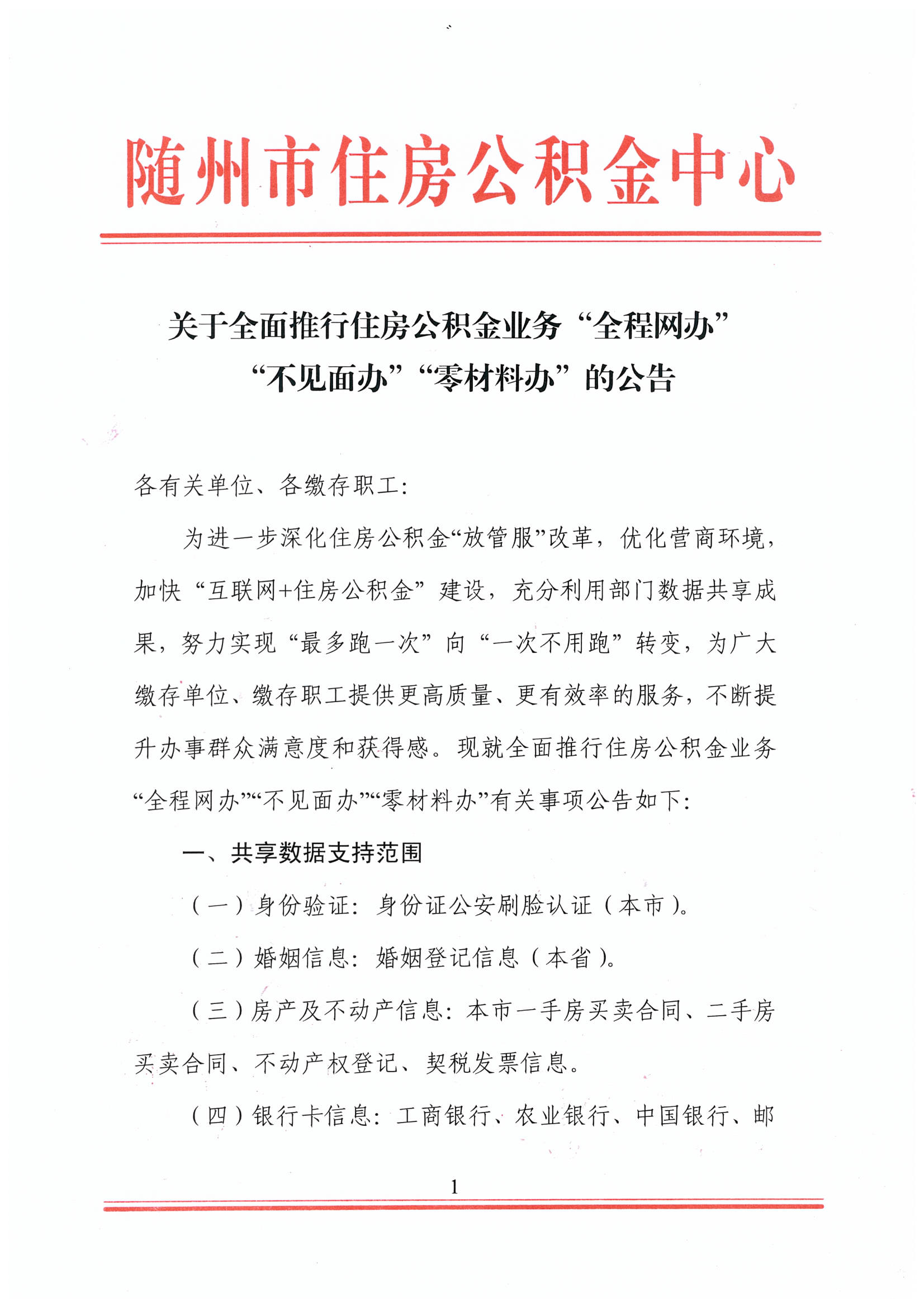 關(guān)于全面推行住房公積金業(yè)務(wù)“全程網(wǎng)辦”“不見(jiàn)面辦”“零材料辦”公告