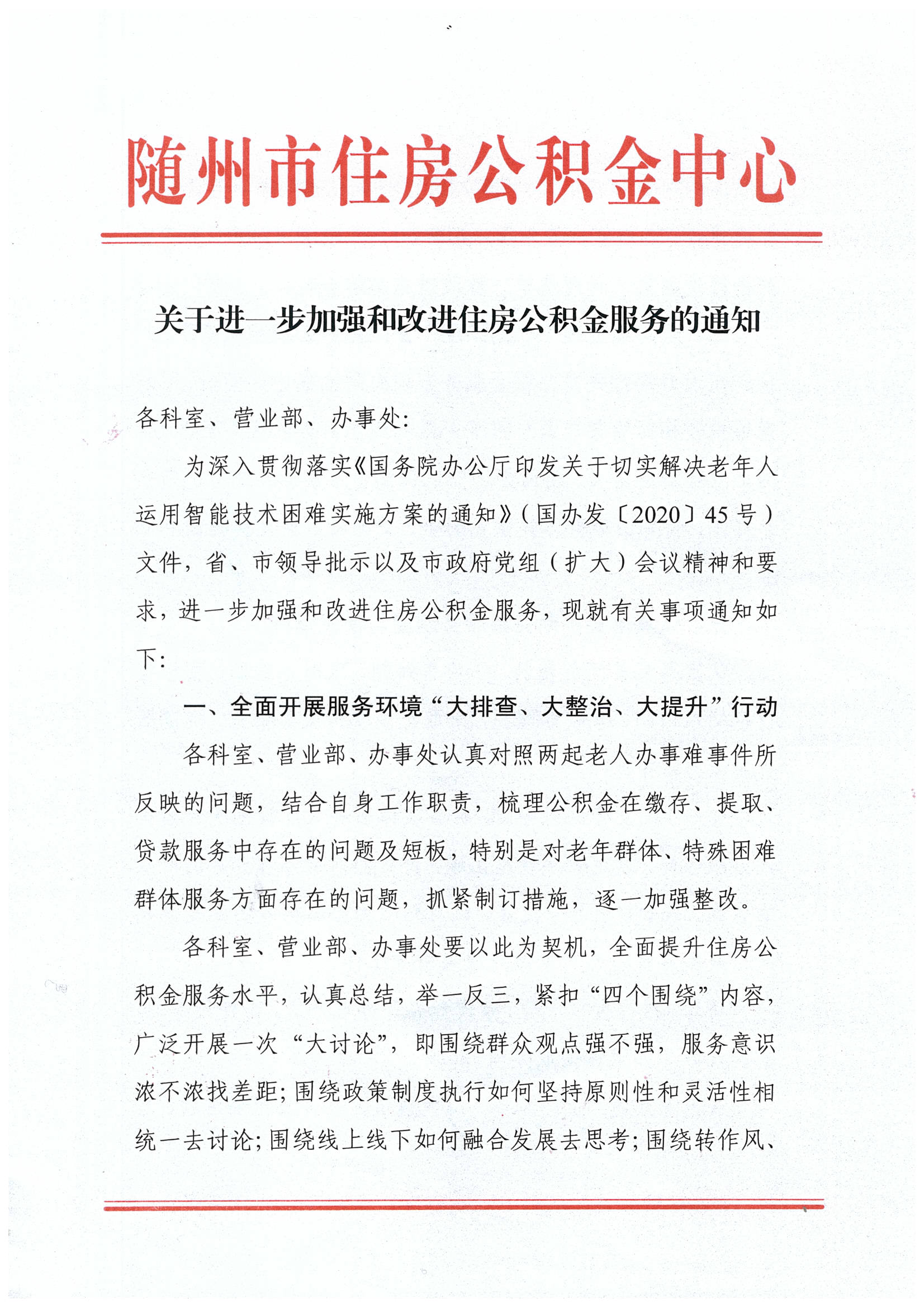 關(guān)于進(jìn)一步加強(qiáng)和改進(jìn)住房公積金服務(wù)的通知