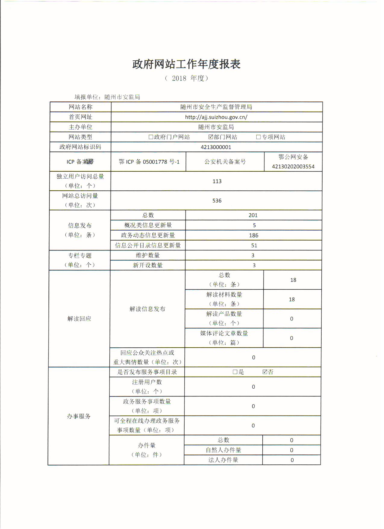 隨州市安監(jiān)局網(wǎng)站工作年度報(bào)表(2018年度)