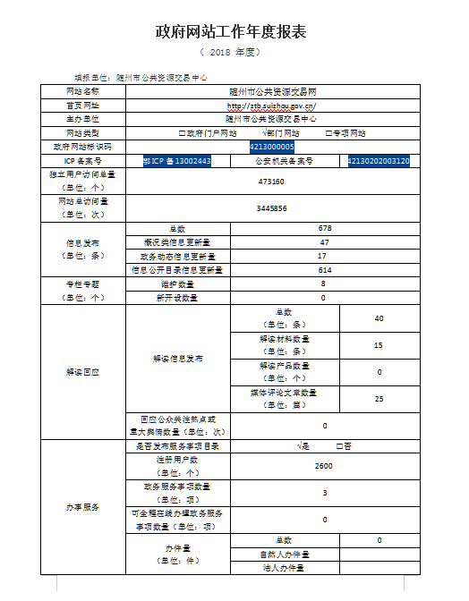 隨州市公共資源局網(wǎng)站工作年度報(bào)表(2018年度)