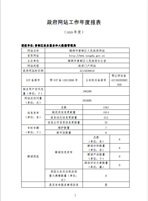 曾都區(qū)2019年政府網(wǎng)站工作年度報表
