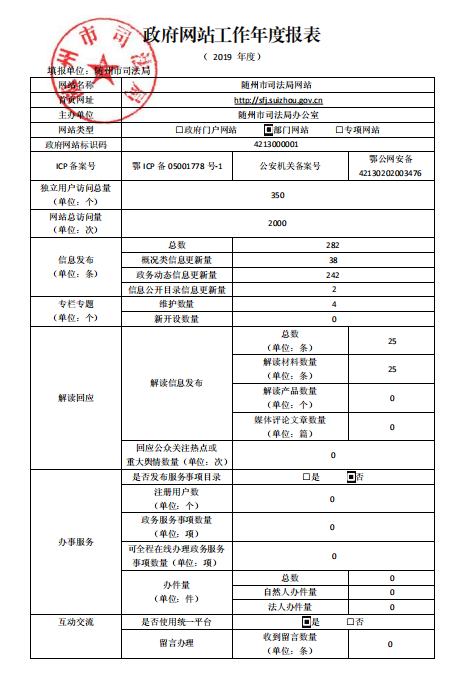 隨州市司法局2019年政府網(wǎng)站工作年度報(bào)表