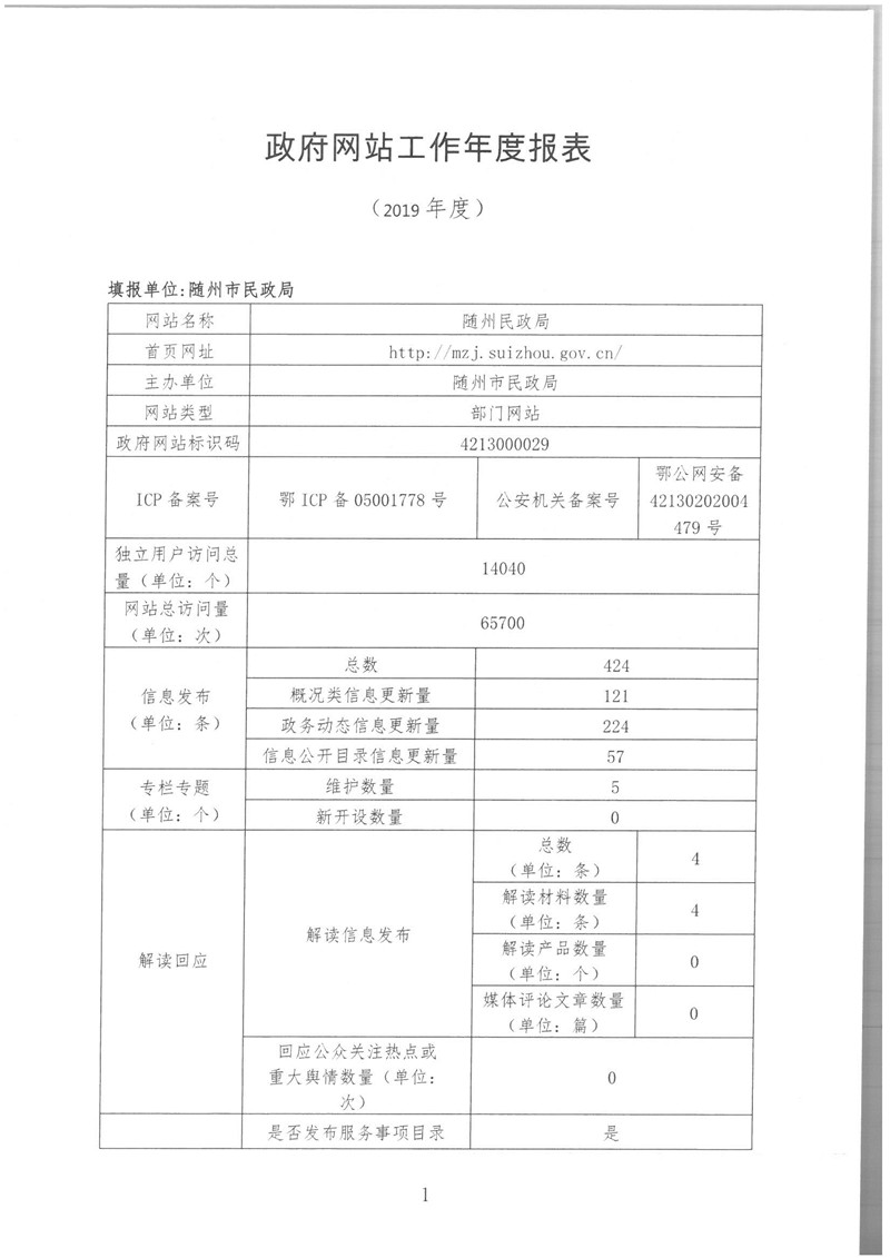 隨州市民政局2019年政府網(wǎng)站工作年度報(bào)表