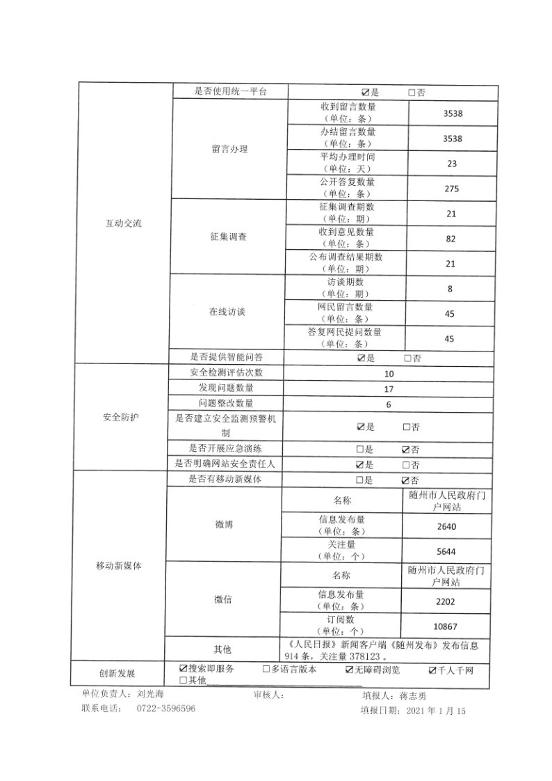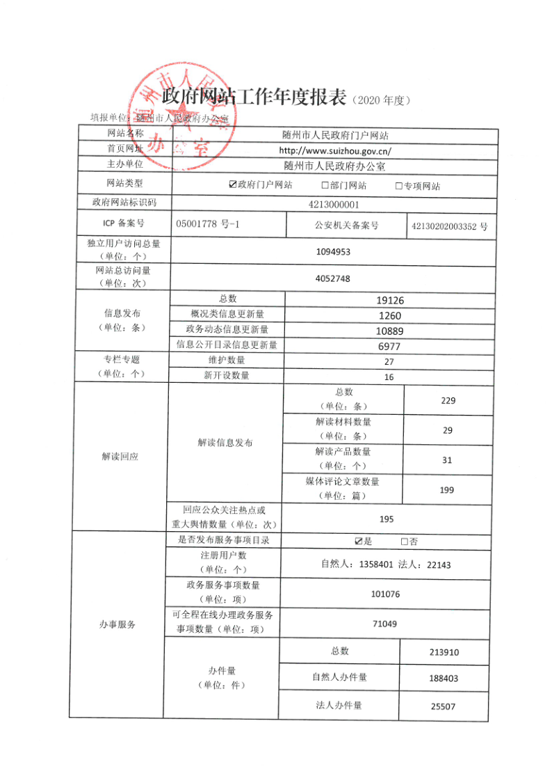 隨州市2020年政府網(wǎng)站工作年度報(bào)表