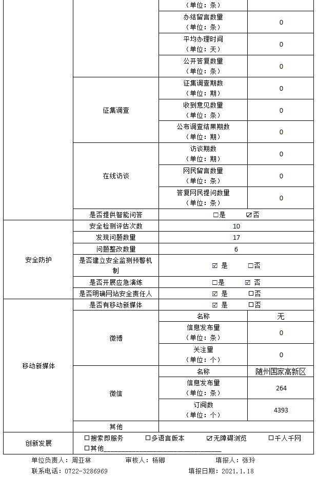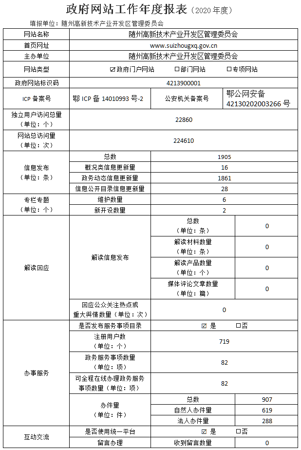 隨州高新技術產業開發區2020年度政府網站工作年度報表