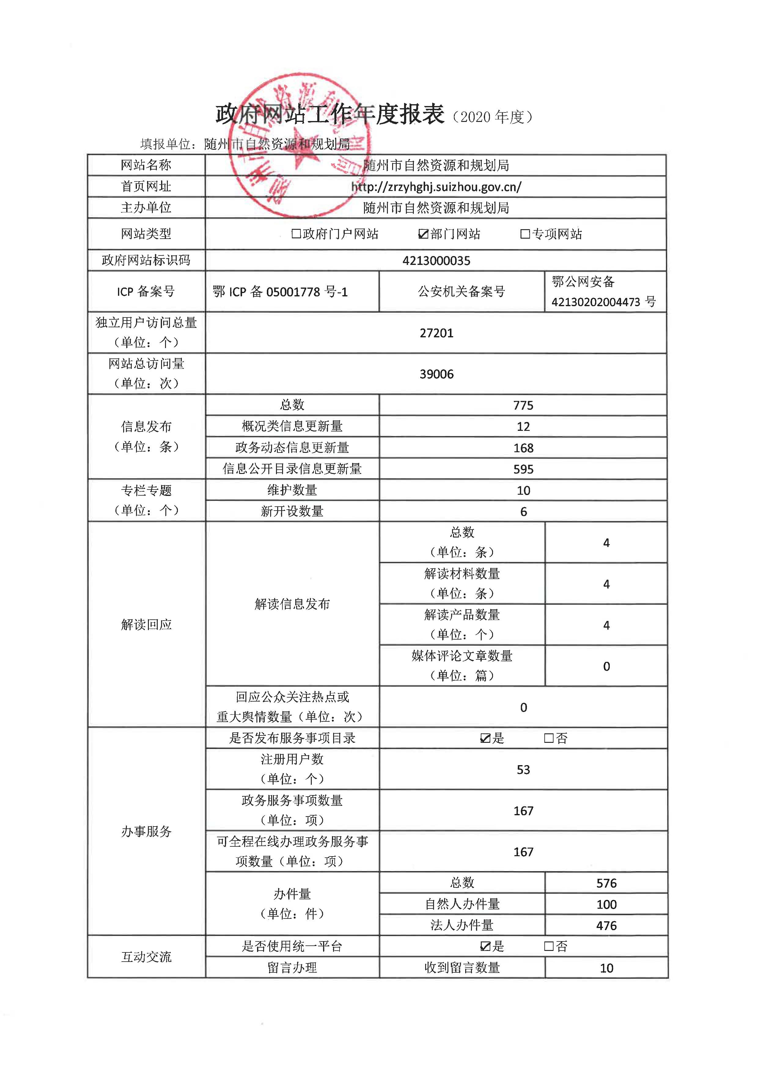 隨州市自然資源和規(guī)劃局2020年政府網(wǎng)站工作年度報表